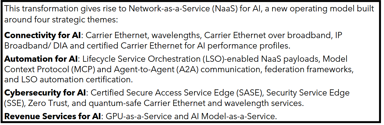 The event covered not just the use-cases for Network-as-a-Service (NaaS) - and especially AI-driven growth - but also the way those are accessed, especially via APIs, or where agents act as the “customer”.